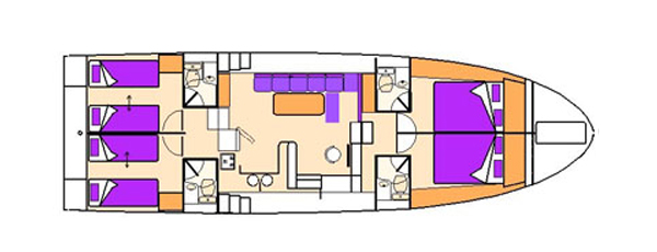 maximale Belegung:Maximale Belegung aller Betten in den Kabinen sowie Nutzung der zusätzlichen Schlafplätze im Salon