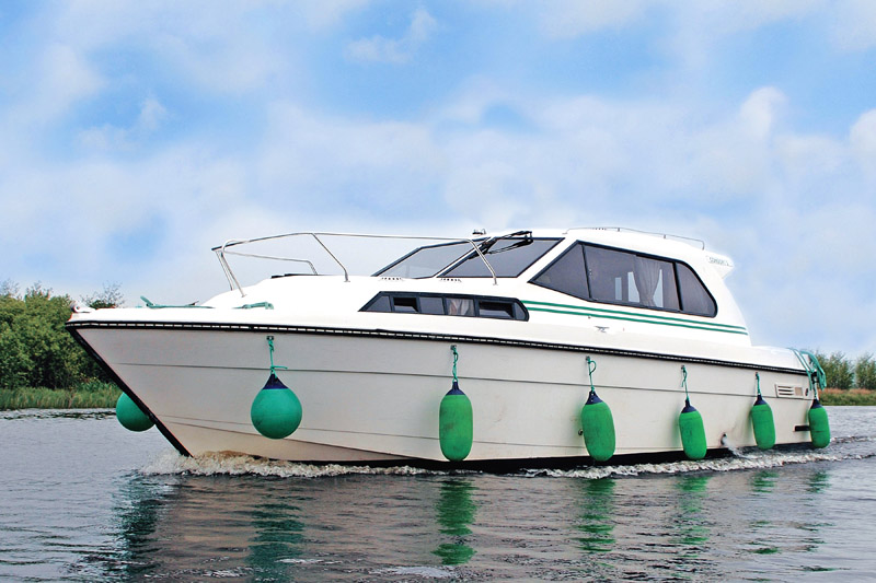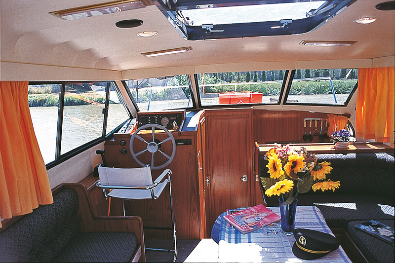 Die Consort bietet Platz für bis zu vier Personen. In der Vorderkabine stehen zwei Einzelbetten bereit. Zusätzlich kann im geräumigen Salon die Sitzecke in ein Doppelbett umgewandelt werden. Hier befindet sich auch der Steuerstand, ein Schiebedach, CD-Spieler und der Zugang zum Hinterdeck mit Sitzgelegenheit und Badeplattform.