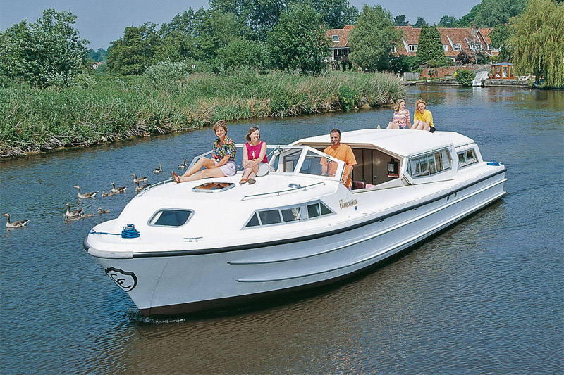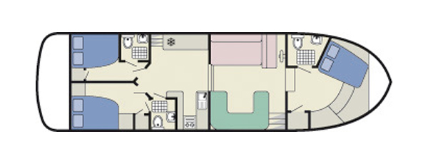 Auf der Commodore Plus befinden sich alle Bereiche des Bootes auf einer Ebene. Die drei mit einem Doppelbett ausgestatteten Kabinen, haben Zugang zum jeweils angrenzenden, eigenen Badezimmer mit Dusche und WC. Im Salon, wo sich auch der Steuerstand befindet, können zudem durch die in ein Doppelbett umwandelbare Sitzecke zwei weitere Schlafplätze geschaffen werden. Zusätzlichen Komfort an Bord bieten der CD-Spieler und TV, die Mikrowelle sowie das Schiebedach auf Höhe des Salons.