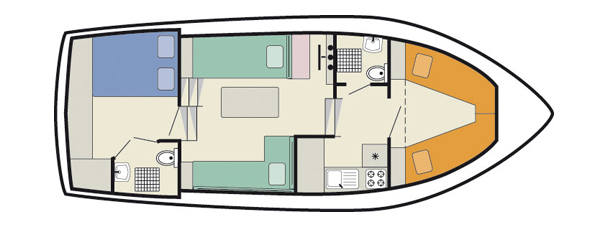 - Kabine vorn mit 2 Einzelbetten (teilweise Umbaumöglichkeit zu Doppelbett)