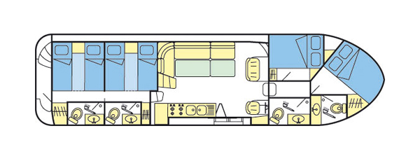 maximale Belegung:Maximale Belegung aller Betten in den Kabinen sowie Nutzung der zusätzlichen Schlafplätze im Salon