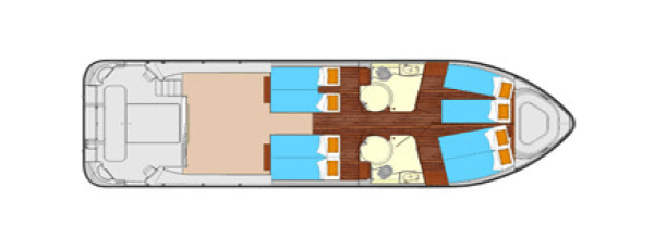 - 4 Kabinen mit jeweils 2 Einzelbetten (Umbaumöglichkeit zu Doppelbett)