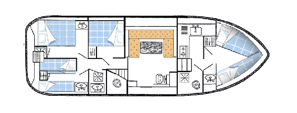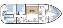 Die Tarpon 42 N ist optimal für große Gruppen geeignet und verfügt über insgesamt vier Kabinen und zwei Badezimmer mit Dusche und WC. Die vordere Kabine verfügt ein Doppelbett und ein Einzelbett in halber Höhe, die hinteren Kabinen über Doppelbetten bzw. über Stockbetten mit zusätzlichem Einzelbett. In der Mitte des Bootes liegt neben der separaten, gut ausgestatteten Küche der großzügige Salon mit Innensteuerstand und Sitzecke, die bei Bedarf in ein zusätzliches Doppelbett umgewandelt werden kann. Im Außenbereich befindet sich neben der Terrasse mit zweitem Steuerstand auch ein großes Sonnendeck, von wo aus Sie den tollen Blick auf die Flusslandschaft genießen können. Für ein noch einfacheres Navigieren des Bootes finden Sie selbstverständlich ein Bugstrahlruder an Bord. Im Vergleich zur Tarpon A ist dieses Boot die neuere Version.