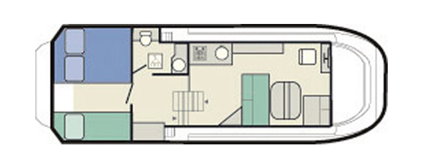 - Kabine hinten mit Doppelbett und Sitzbank (Umbaumöglichkeit zu Einzelbett)