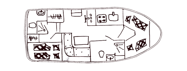 Die Gruno 1000 ist ideal für den Urlaub mit der Familie. Es verfügt über zwei Kabinen, wovon die vordere mit zwei Einzelbetten, die hintere mit einem Doppelbett möbliert ist. Die beiden Badezimmer sind jeweils mit Dusche und Toilette ausgestattet. In der Bootsmitte befindet sich das Badezimmer mit Dusche und WC sowie die gut ausgestattete Küche und der Salon mit Sitzecke, die bei Bedarf in ein weiteres Doppelbett umgewandelt werden kann. Um die Sonne genießen zu können, gibt es im Außenbereich eine große Terrasse mit Sonnendach und zweitem Steuerstand sowie einer Außendusche. Zusätzlichen Komfort an Bord der Gruno 1000 bietet neben dem Landstromanschluss auch das Bugstrahlruder, das ein noch einfacheres Navigieren zulässt.