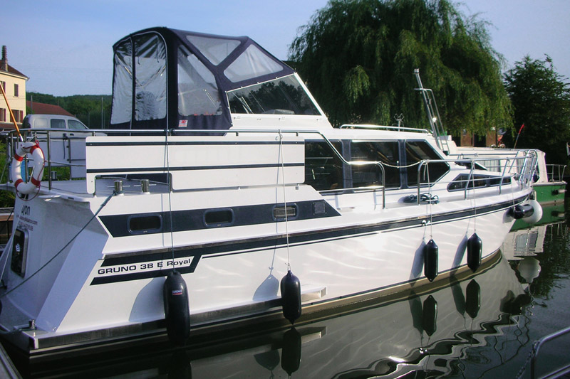 Die Gruno 38 Elite wurde für den anspruchsvollen Urlauber konzipiert, der auch an Bord eines Hausboots auf keinerlei Komfort verzichten möchte. An Bug und Heck des Schiffes befinden sich die beiden Schlafkabinen mit je einem freistehenden Doppelbett. Die Nasszellen an Bord sind mit insgesamt zwei Duschen und Toiletten ausgestattet. In der Bootsmitte liegt neben der separaten Küche der geräumig Salon mit Innensteuerstand und Sitzecke, die bei Bedarf in ein weiteres Doppelbett umgewandelt werden kann. Der Außenbereich besticht durch seine schöne Terrasse, wo sich auch der zweite Steuerstand befindet. Das Bugstrahlruder sorgt dafür, dass sich das Boot noch einfacher steuern lässt.