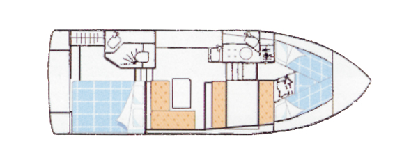 Die Rego 2000 AK verfügt über zwei Schlafkabinen mit einem Doppelbett bzw. zwei Einzelbetten. Bei Bedarf können drei weitere Schlafplätze in der Küche und im Salon durch Umbau der Sitzecken in ein Doppel- bzw. Einzelbett geschaffen werden. An Bord befinden sich eine Dusche, eine Toilette und zwei Waschbecken. Auf dem schönen Außenbereich ist neben der Terrasse auch ein zweiter Führerstand, so dass Sie auch beim Steuern das gute Wetter genießen können.