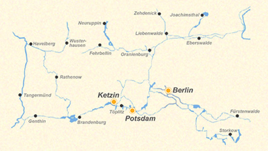 Bevor Sie aber Kurs auf Berlin machen, lohnt noch ein Abstecher nach Potsdam, der eindrucksvollen Landeshauptstadt Brandenburgs. Besuchen Sie hier unbedingt das „Holländische Viertel“ und Schloss Sanssouci. Dieses wurde nach eigenen Skizzen von Friedrich dem Großen in den Jahren 1745–1747 als kleines Sommerschloss im Stil des Rokoko errichtet und unter Friedrich Wilhelm IV. 1840–1842 durch Umbau und Verlängerung der zwei Seitenflügel erweitert.
