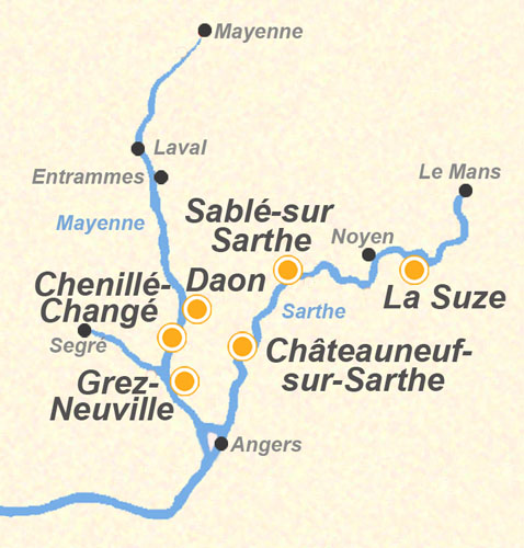 Abfahrtsorte in dieser Region: Châteauneuf-sur-Sarthe, Chenillé-Changé, Daon, Grez-Neuville, La Suze, Sablé-sur-Sarthe