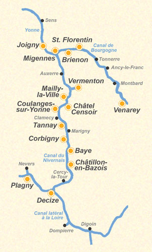 Abfahrtsorte in dieser Region: Baye, Brienon, Châtel Censoir, Châtillon-en-Bazois, Corbigny, Coulanges-sur-Yonne, Decize, Joigny, Mailly-la-Ville, Migennes, Plagny, St. Florentin, Tannay, Venarey, Vermenton