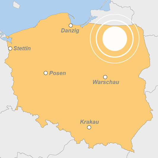 Im Nordosten Polens erstreckt sich die Masurische Seenplatte, die auch als „Land der tausend Seen“ bekannt ist. Möchte man unberührte Natur erleben und die Ruhe der Landschaften genießen, sind die Masuren das perfekte Revier. Mancherorts hat man noch den Eindruck, dass die Zeit stehen geblieben ist und merkt nichts von der Hektik, die einen sonst beherrscht. Machen Sie ausgedehnte Spaziergänge in den die Seen umgebenden Wälder und beobachten Sie dabei Hirsche, Wölfe, Wildschweine und zahlreiche Vogelarten. Auch für Angler ist dieses Revier aufgrund des Fischreichtums prädestiniert.