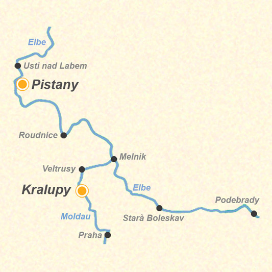 Ebenfalls empfehlenswert ist es, von Mělník aus die Elbe stromaufwärts zu befahren. Machen Sie unter anderem Halt an der Wallfahrtstätte Stara Boleslav und dem berühmten Kurort Podebrady, der für seine Mineralquelle mit kohlendioxidhaltigem Wasser bekannt ist.